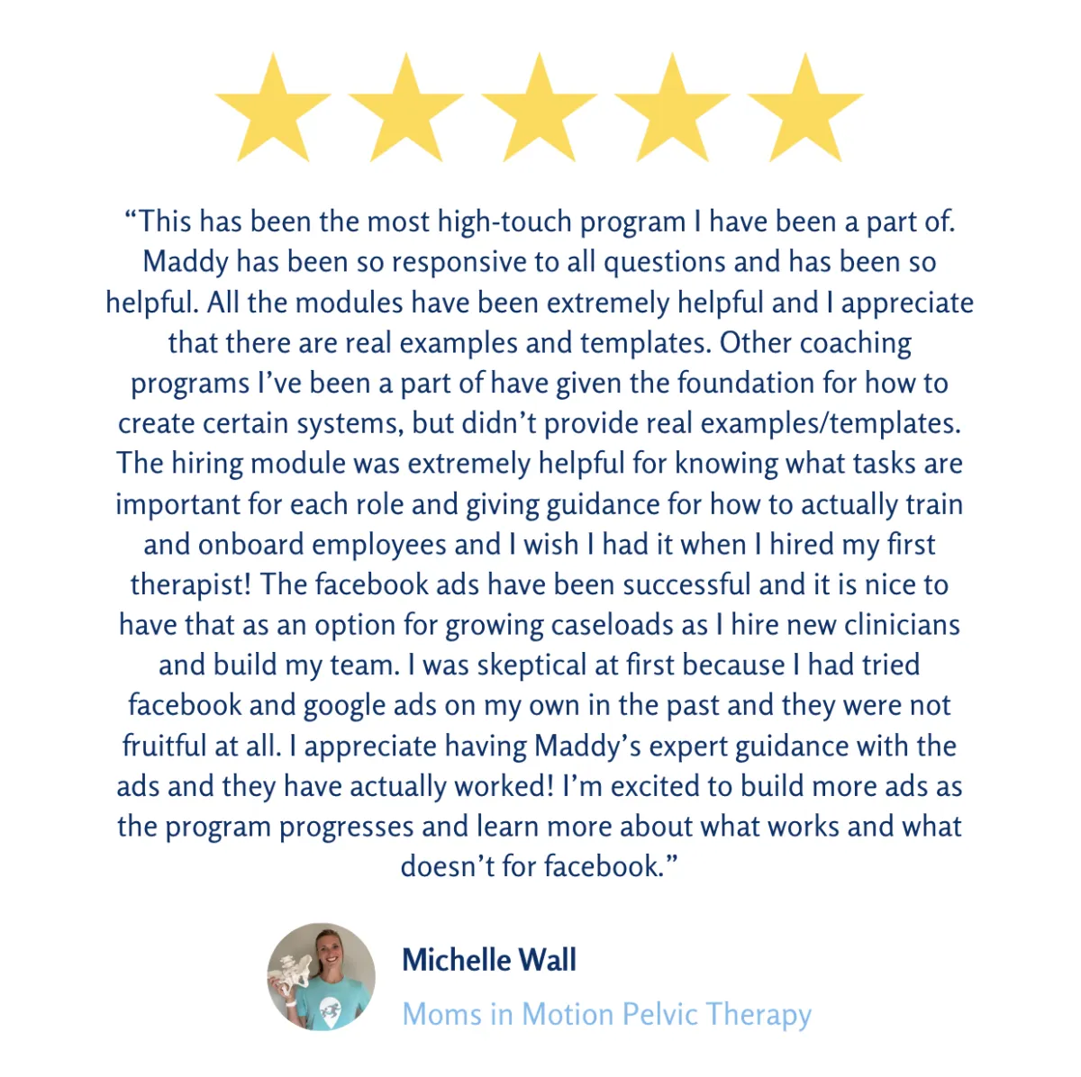Self-paced modules that walk you through exactly how to run profitable ads for pelvic health. Learn how to craft irresistible offers, write ad copy that converts, set budgets, and scale.